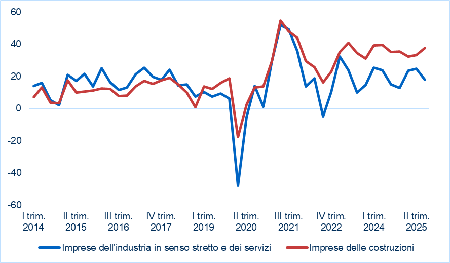 Una minor crescita della domanda estera emerge anche dall’Indagine sulle aspettative di inflazione e crescita della Banca d’Italia. Solo il 23% delle imprese intervistate ha percepito un aumento della domanda estera rispetto al trimestre precedente (erano il 25.4% nel secondo trimestre 2025); per il trimestre successivo le imprese si dimostrano maggiormente ottimiste, con un 28.9% dei rispondenti con aspettative di crescita della domanda estera a fronte di un 15.2% con aspettative in contrazione.