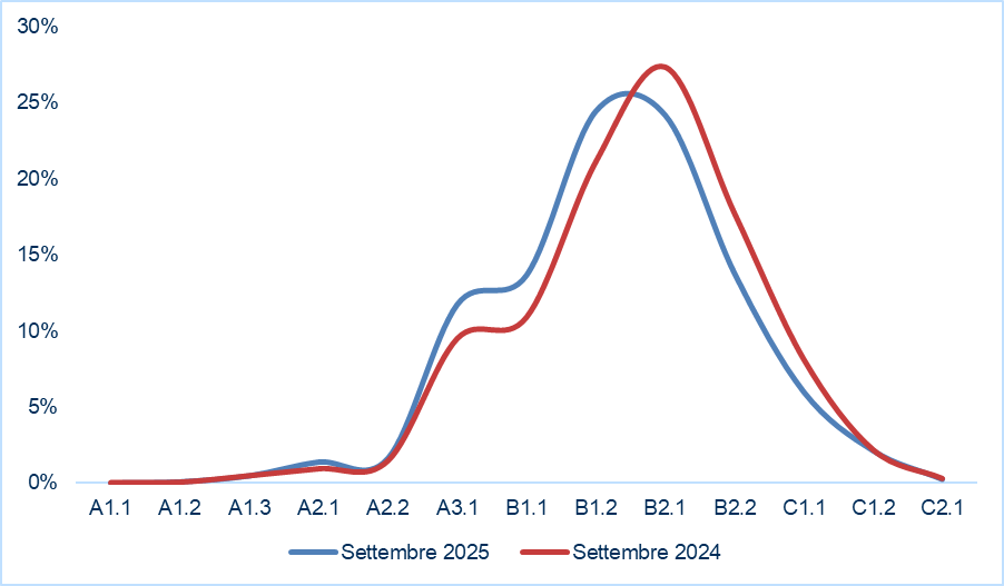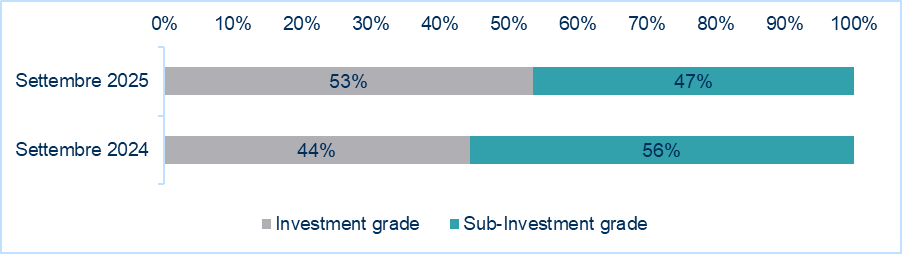 Grafico 4 Distribuzione dei rating di credito – Settembre 2025 vs. Settembre 2024